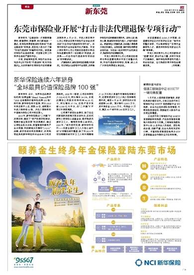 新快报讯 近日,世界知名品牌评估机构“品牌金融”(Brand Finance)发布“2020全球最具价值保险品牌100强”排行榜,新华保险再次登榜,同比2019年排名晋升2名,居第34位,连续第六