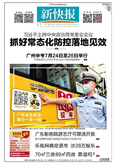 习近平主持中央政治局常委会会议 抓好常态化防控落地见效 02 广州中考7月24日至26日举行 中考体育从6月13日开始,总分不变但难度降低 03 广州全市校车 实行一车