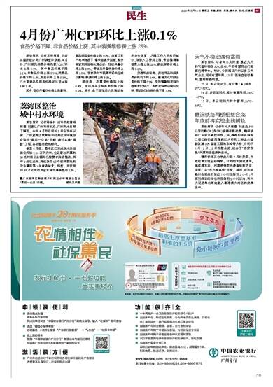 新快报讯 记者王彤报道 记者从国家统计局广州调查队获悉,4月份,广州居民消费价格指数(CPI)环比上涨0.1%,其中食品价格下降1.1%,非食品价格上涨0.5%;消费品价格下降0.3%,服务价格上