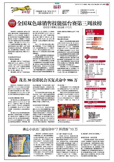 新快报讯 记者陆妍思 通讯员 莫冠婷 曹欣然报道 中国福利彩票发行管理中心4月20日启动的 “红蓝大行家,我来争百佳”双色球销售技能擂台赛活动,已完成了三周赛事,广东全省9000多个福彩投注站点使