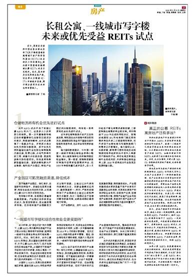 长租公寓、一线城市写字楼 未来或优先受益REITs试点