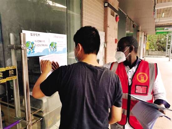 ■在战疫期间,天园街内的外籍人士做志愿者服务社区。 |