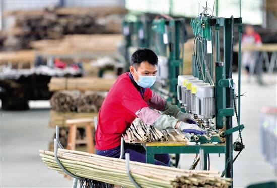 ■广东遂溪县和广西融安县在2017年9月签订扶贫协作框架协议,开展“携手奔小康”定点帮扶工作。5月17日,在广西融安县农产品加工暨粤桂扶贫协作产业园一家竹制品企业的扶贫车间,工人在生产线上作业。 新华社发 |
