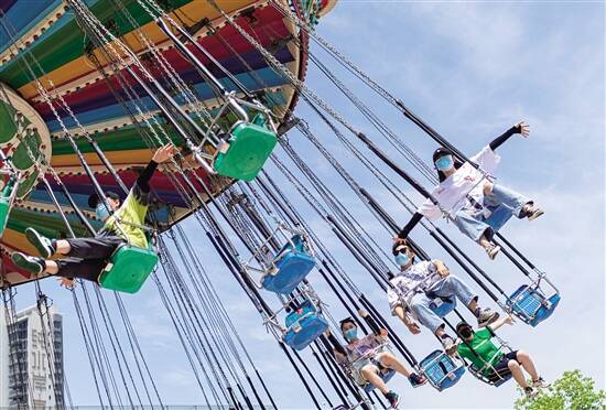 5月19日,游客在武汉欢乐谷内游玩。 当日,湖北武汉欢乐谷重新开放,执行客流量管控,游客需通过网上预约后才能进入,室内场馆暂不开放。 新华社发