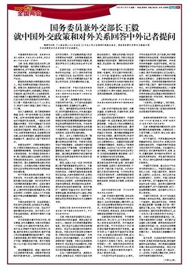国务委员兼外交部长王毅 就中国外交政策和对外关系回答中外记者提问