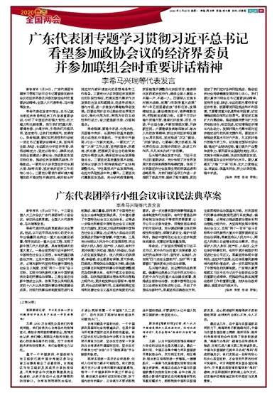 新快报讯 5月24日下午,十三届全国人大三次会议广东代表团举行小组会议,审议民法典草案。全国人大代表李希、马兴瑞等发言。