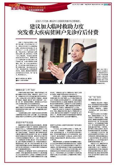 连续13年参加全国两会,奋战医疗战线数十年的周海波初心不改,聚焦点仍是医疗卫生健康领域议题。在脱贫攻坚决战决胜之年,他尤其关注“一人大病,全家受贫”问题。“要让贫困人口看得起病、看得好病,看得上病