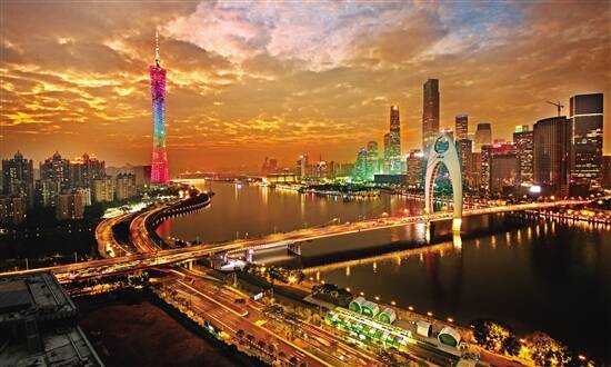 ■■红霞掩映珠江,灯火点亮羊城。 |