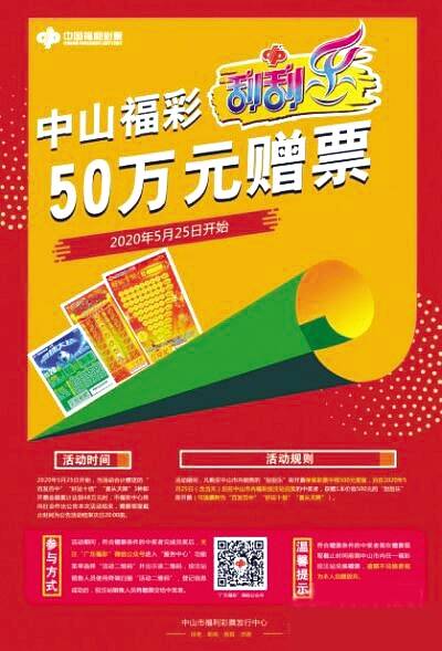 活动期间,凡购买中山市内销售的“刮刮乐”即开票单张彩票中得500元奖级,且在5月25日(含当天)后在中山市内福彩投注站兑奖的中奖者,除了可获得500元中奖奖金,还额外赠送1本价值500元的刮刮乐即开票(可选票种为:“百发百中”“好运十倍”“喜从天降”)。符合赠票条件的中奖者需在赠票领取截止时间前到中山市内任一福彩投注站兑换赠票,逾期不兑换者视为本人自愿放弃。 符合赠票条件的中奖者需先完成彩票兑奖,然后关注“广东福彩”微信公众号后进入“服务中心”功能菜单选择“活动二维码”,中奖者需向福利彩票销售站点人员出示该二维码,由销售站点人员使用终端扫描“活动二维码”,登记信息成功后,销售站点人员将赠票交给中奖者。 当本次活动赠送刮刮乐即开票金额累计达到48万元时,中山市福彩中心将向社会作出公告本次活动结束,赠票领取截止时间为公告活动结束次日20:00前。请广大彩民朋友留意相关信息,及时到福彩投注站兑换赠票。