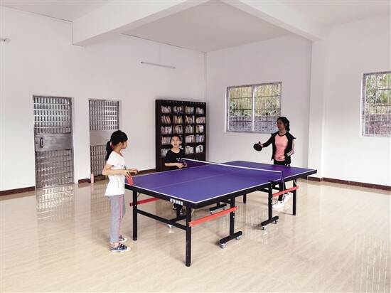 ■李海龙个人捐赠乒乓球台,教孩子们打乒乓球。 |