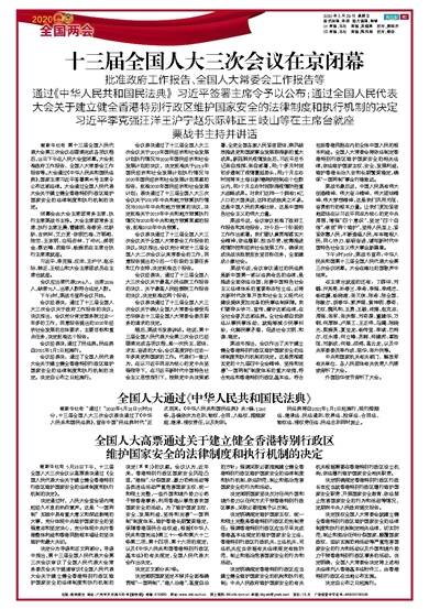 全国人大高票通过关于建立健全香港特别行政区 维护国家安全的法律制度和执行机制的决定