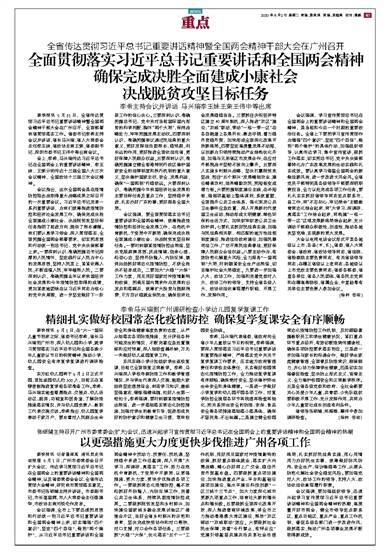新快报讯 5月31日,全省传达贯彻习近平总书记重要讲话精神暨全国两会精神干部大会在广州召开,全面部署我省贯彻落实工作。省委书记李希主持会议并讲话,省长马兴瑞,省人大常委会主任李玉妹,省政