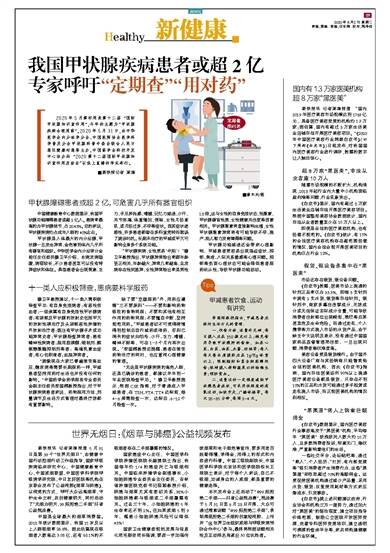 2020年5月第四周是第十二届“国际甲状腺知识宣传周”,今年的主题为“甲状腺疾病合理用药”。2020年5月31日,由中华医学会内分泌学分会、中国医师协会医学科学普及分会甲状腺科普专委会联合人民日报