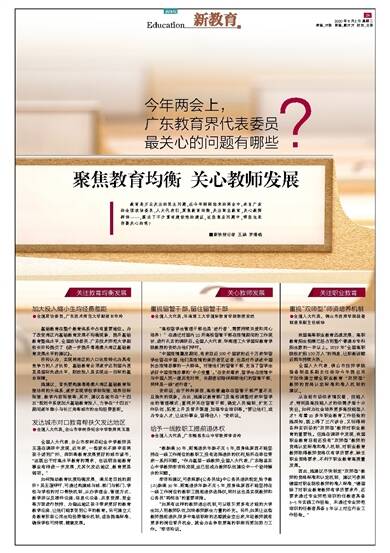 教育是万众关注的民生问题,在今年刚刚结束的两会中,来自广东的全国政协委员、人大代表们,聚焦教育均衡,关注职业教育,关心教师群体……,提出了不少富有建设性的建议,这些焦点问题中,哪些也是你最关心的呢