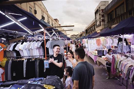 ■白云区均禾街党工委积极响应上级号召及市场需求,落实“六保”、“六稳”,调整思路,全面由“堵”到“疏”,开创“政府引导+联社放管+群众参与”模式,在清湖广场及火龙公园开辟两个夜市地摊摆卖点,用活用好“地摊经济”、“夜间经济”。新快报记者 夏世焱/摄 |
