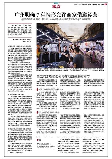 ■本版采写:新快报记者 李佳文 通讯员 成广聚 交通枢纽节点原则上不允许借道经营 《方案》明确,要坚持“统筹疫情防控和经济发展”“坚持因地制宜和适度放开”“加强分类指导和共治共管”3项工作基本原则,在严格落实疫情常态化防控要求,以及不影响消防安全、不影响交通秩序、不污染城市环境、不侵害公共利益和他人利益的前提下,可以允许部分区域具备实施基本条件的商家(个体户)临时借道经营。 一是允许商场、超市临时借道经营;二是允许专业市场、批发市场临时借道经营;三是允许步行街、酒吧街临时借道经营;四是允许沿街商铺临时借道经营;五是允许餐饮店临时借道设置占道经营;六是允许快递企业临时借道堆放派送包裹;七是其他可以允许借道经营的情形。 广州市城市管理综合执法局表示,借道经营时段要充分考虑区域特点、商家类型、交通状况、居民作息等因素,对商家(个体户)实行分类分时段借道经营。对不影响交通和居民正常生活的商场、超市、步行街、酒吧街、批发市场、专业市场、餐饮店等商家(个体户)可以适当延长夜间借道经营时间。 其中,为确保公共安全,对重要交通枢纽节点(如地铁口、公交站场、火车站)等重点区域原则上不允许借道经营。 强化监管建立备案制度 《方案》要求,以审慎包容态度落实普惠政策,在商家(个体户)提出借道经营的申请后,由属地街(镇)进行登记备案,并根据区域特点与商家(个体户)实际,明确借道经营的区域、场所、路段、时段及相关要求。建立常态化监管机制,做好做实做细帮扶政策,属地各部门按照职责分工,指导商家(个体户)扎实做好疫情防控、消防安全、经营秩序、环境卫生等方面工作,及时纠正不符合要求的借道经营行为,坚决避免出现“一放就乱”现象。 同时,通过聚焦借道经营效果,认真听取民声民意,定期评估检讨借道经营政策,不断积累经验、完善机制、改进方法。同时采取优化、取消、增补等方式,对临时借道经营区域、商家(个体户)实行动态调整,使借道经营更加切合城市管理和经济发展实际。 探寻经济发展和城市治理最佳平衡点 广州市城管部门有关负责人表示,广州作为国家重要中心城市和国际化大都市,要更加注重保障社会运行秩序和城市运行安全,坚持不以牺牲公众利益和城市环境为代价,正确处理好“放”“管”与“服”的关系,找到经济发展方便市民和城市治理的最佳平衡点、融合度。 对借道经营商家,实行“721”工作法,寓管理于服务,加强精细化管理,重点落实好垃圾分类、油烟处理、食品安全等规定,引导其规范有序、文明守法经营,尽最大努力争取全社会的最大认同和广泛支持,坚决避免“一管就死、一放就乱”现象。 白云均禾街把公园停车场改成地摊夜市 广州多个现存的流动摊贩疏导区或多或少都需要向摊贩收取卫生管理费用。而两周之前,在白云区均禾街,街道办和清湖联社主动规划建设了火龙公园夜市地摊摆卖点,设置50个摊位。不仅铺设排水管并增加治安摄像头等基础设施建设,还划清摊主清洁卫生责任、建立群众投诉现场快速处置等管理机制,疫情期间也不收取摊贩任何费用。通过积极促进地摊交易,使原本冷冷清清的清湖广场和火龙公园变得热热闹闹,片区警情也呈现了明显的下降。 做流动摊贩的日子也很辛苦 10元三斤的当季荔枝、12元一只的烧鸡、7元一份的炒粉……晚上6点,均禾街道中心火龙公园的原停车场开始“冒出”很多流动摊贩,他们的三轮车里装着各种各样的食物,部分还需要现场制作。 7点,夜幕降临,公园内人流熙熙攘攘,流动小摊的生意开始好了起来。 26岁的湛江小伙刘乐林熟练地在他的烧烤车上旋转着食品进行烘烤。他表示,自己上班的皮具厂两个月前就开始只能断断续续开工,收入没了保证。“正常上班的日子,一个月算上加班费能有6000元。眼见着天天在家上网也不行,就从网上学习了怎么做烧鸡。”进入火龙公园经营十天后,他表示,做流动摊贩的日子很辛苦。“一天就一百多块钱。如果工厂复工,我还是更想回去上班。” 来自湛江雷州24岁的陈雪珠有一个单独的水果摊位。她表示,到清湖有五六年时间了,之前在皮具工厂打工,三年前就出来卖货做“走鬼”了。“摆摊,看到哪里人多就去哪里。两周前,城管和村里专门把我们引导到这里。现在好很多,不用到处流动,也安全很多。摊位聚集,生意也好。”陈雪珠说,地摊一天可以卖到200元。每天晚上收档前,大家也都会打扫干净,这样对街坊好,对自己也好。 让地摊形成规模化效应 均禾街方面表示,重启地摊经济,打开了群众创收的门道,许多就业难的群众自发汇聚起来创业摆摊,让地摊由零散走向集中,形成规模化效应。既保证了摆摊群众有经营场所,又减轻了执法部门管理成本,还让消费者在“货比三家”中得了实惠,真正带动了“人气”,保住了“底线”。 据白云区清湖村联社干部李叶细介绍,早在几个月前,村里和区里都有人提议把占道经营的流动商贩引导到一个地方进行经营,目的很简单,就是解决占道经营堵塞交通的问题。随着“释放地摊经济活力,让城市更有烟火气”的概念提出,村里立即动手。在把原有的停车场清空,加建照明路灯,聘请两名执法人员并增设看排污管道,两周前,在火龙公园开辟的夜市地摊摆卖点正式开始营业。村里治保人员随即动员分散