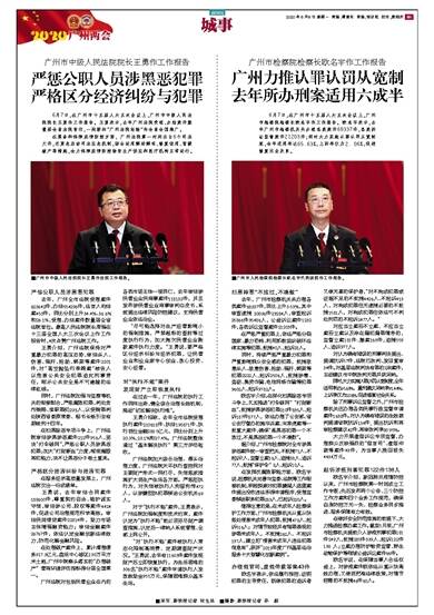 6月7日,在广州市十五届人大五次会议上,广州市中级人民法院院长王勇作工作报告。王勇表示,去年广州法院受理、办结案件数量居全省法院首位,一批新的“广州法院经验”向全省全国推广。 在服务和保障疫情