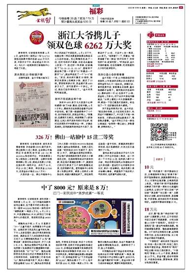 新快报讯 记者陆妍思 通讯员巫倩敏报道 双色球第20042期开奖中,佛山揽得15注二等奖,全由佛山市高明区丰成街民安市场149-50的44130536投注站中出,中奖彩票是5张3倍投注1注单式票,