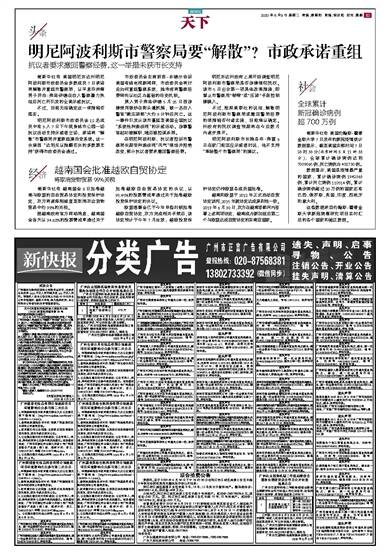 据新华社电 美国明尼苏达州明尼阿波利斯市政委员会多数成员7日承诺将解散并重组市警察局,以平息非洲裔男子乔治·弗洛伊德在白人警察暴力执法后死亡所引发的全美示威抗议。 不过,目前无法确定这一