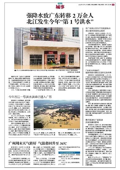强降水致广东转移2万余人 北江发生今年“第1号洪水”