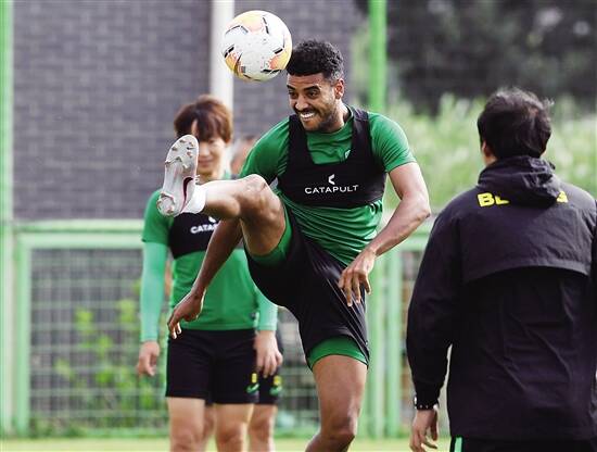 入籍球员阿兰首次穿着国安队服在公众面前亮相,远在法国的主教练热内西奥通过微信视频与场边的记者们见面。