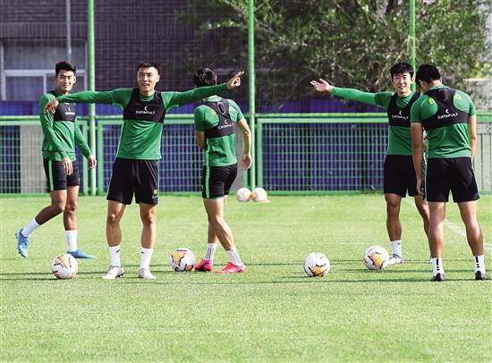 据新华社电 6月11日下午,北京国安队举行媒体开放日活动。这是进入2020赛季备战期后,北京国安队在高鑫基地训练场举行的首次媒体公开课。 入籍球员阿兰首次穿着国安队服在公众面前亮相,远在法国的主教练热内西奥通过微信视频与场边的记者们见面。