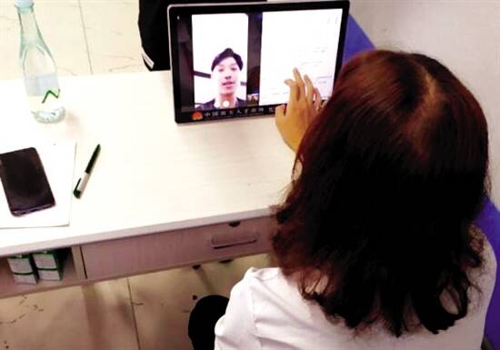 ■现场招聘会以智能桌面协助远程面试。通讯员供图 |