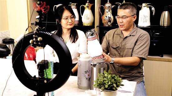 ■广交会开幕前,广州轻出集团股份有限公司员工在排练直播。新华社发 |