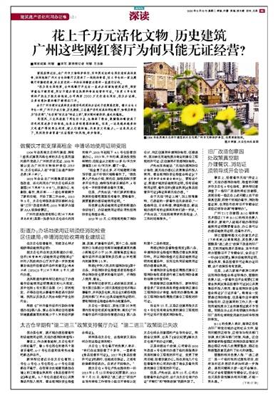新冠疫情过后,由广州市文物保护单位、百年英式红砖仓库改造而成的美食、休闲地标广州太古仓的餐厅又迎来了一批批的食客,但4号仓的一家主题餐厅却黯然退场,而占其空间一半的休闲餐饮出租却一直虚位以待。 “因为是仓库性质,去年底餐厅开业后一直未办到场地使用证明,消防审查也不被受理,所以不能办营业执照和食品经营许可证。”负责4号仓招商的卢先生万般无奈地说,公司耗资2000万元改造仓库后,因为办证难,众多有意加盟的餐厅被挡在门外。 由于广州目前对这类转变功能活化利用的办证处于政策真空期,像太古仓4号仓一样,广州不少由文物、历史建筑、工业遗产活化而成的网红餐厅、咖啡店都因为“住改商”、“仓改商”而无法“持证上岗”,面对随时被投诉、查处的尴尬。 民国风、工业风造就了网红打卡点,也推高了租金,最赚钱的餐饮成了活化利用老房子的首选,也是众多创意园的标配。但是,一边是越来越多的文化遗产得到再生利用,使人们能体验、共享其文化魅力;一边是风光之下,民间投资者冒着“无证驾驶”的风险,举步维艰。 做餐饮才能支撑高租金 申请场地使用证明受阻 1904年由英商太古洋行建造、拥有7座英式建筑风格仓库的太古仓是民国时期外资进入广州的历史见证,2008年被认定为广州市文物保护单位,2019年,太古仓码头入选“中国工业遗产保护名录(第二批)”。 2008年由业主广州港集团实施转型改造,活化利用为广州太古仓码头创意园(以下简称“太古仓”)。创意办公、电影院、餐饮、展示库……7座仓库被赋予了新的功能,开始了第二次生命。2010年9月,太古仓转型改造项目被树为全省“三旧”改造的典范;2015年被评为国家AAA级旅游景区。 广州市君尧投资有限公司(以下简称君尧投资)是第一批参与太古仓活化利用的商户,2008年起租下4、5号仓经营创意办公。2019年,十年约满,君尧投资投标续约,但租金从之前的50多元/平方米骤增至130元/平方米,翻了一番。 “租金贵了这么多,不可能继续只做写字楼,这个价钱只能做餐饮了。”据负责人卢先生介绍,续约后,除按招标方要求开设书店、咖啡馆和音乐剧场外,4号仓有一半的面积都由餐饮支撑。 但是,卢先生说:“我们原来的营业执照的经营范围里没有餐饮,要做餐饮,就要重新办理场地使用证明。” 而负责出具场地使用证明的街道办告诉他们,办场地使用证明必须先经消防安全检查合格。 2019年10月,公司按规范做了消防设计,向区住建局申请消防验收,但被退件,因为缺乏用地性质为商业的建设工程规划许可证,区住建局不受理消防验收。 卢先生沮丧地说:“无法办理消防设计验收,就无法办理《公共聚集场所投入使用、营业前消防安全检查合格证》(下称《消防安全检查合格证》),要有这个证,街道才能发场地使用证明。没有场地使用证明,餐饮店的《营业执照》《食品经营许可证》等证照都无法办理。” 由于无法“持证上岗”,加上疫情影响,已进驻的一家餐饮店无奈退场,“一些咖啡店、日本料理、韩国料理店,都说能办理所有的证照再和我们进一步谈。”卢先生说,“无法招商带来的是租金、人工和时间等损失。” 街道办:办场地使用证明须经消防检查 区住建局:申请消防验收需商业建规证 在太古仓经营餐饮,到底怎么样才能获得场地使用证明? 据太古仓所在的龙凤街道办介绍,住所(经营场所)场地使用证明按照《广州市人民政府办公厅关于进一步放宽商事主体住所经营场所条件的意见》(穗府办规〔2016〕8号)(以下简称:8号文)进行办理。 龙凤街道向新快报记者列出了办理餐饮场地使用证明需满足的七大规定,其中包括8号文第三条第(六)项的规定,不得在住宅从事餐饮等容易污染环境、扰民以及涉及人民生命财产安全的行业; 根据《广州市餐饮场所污染防治管理办法》第八条,禁止在与周边住宅楼等环境敏感建筑的距离少于5米的场所新建、改建、扩建餐饮场所。第十二条,油烟排放口与周边住宅等环境敏感建筑的最小距离应不小于20米;烟管高度应高出餐饮场所所在建筑物及四周20米范围内的建筑物1.5米; 根据《中华人民共和国消防法》第十五条,未经消防安全检查或者经检查不符合消防安全要求的餐饮场所,不得投入使用、营业。 新快报记者研究上述政策后发现,8号文第三条第(六)项只是规定住宅不得从事餐饮,并未涉及仓库。而且全文都没有提及相关部门(单位)出具场地使用证明时,要有消防安全检查合格作为前置条件。 太古仓一面临江,其他三面20米范围内没有住宅或其他建筑物,满足《广州市餐饮场所污染防治管理办法》第八条和第十二条的规定。 根据《消防监督检查规定》第八条,申请消防安全检查时需提交营业执照复印件。所以消防检查不应是场地使用证明的前置条件,反而应先凭场地使用证明办理营业执照。 申请消防安全检查还需提交建设工程消防验收或者进行竣工验收消防备案的法律文件复印件。 根据海珠区住建局指引,新快报记者登录广东政务服务网查询海珠区建设工程消防设计审查、验收的办事指南,建设工程消防验收需提交建设工程规划许可证。 而去年10月,正是区住建局指太古仓4号仓没有商业性质的建设工程规划许可证而不受理其消防验收。 太古仓早期有“退二进三”政策支持餐厅办证 “退二进三”政策现已失效 因为是仓库,就不能