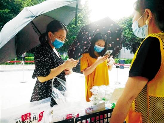 ■新快报记者 李斯璐 社区居民趁“扶贫墟” 上午10时30分,正是兴华街燕塘街坊的买菜高峰期。社区居民李姨在“新农创”摊位上发现了平时少见的农产品:连州山野中的白茶“藤婆茶”虽不起眼,却有清热润肺、解暑消炎的功效;当季的香蜜桃看上去颇为青涩,入口甜脆,汁水丰富。这些都是来自清远连州脱贫攻坚产业扶贫的优质农产品。李姨乐呵呵地买了桃子、玉米等产品,带回家给家人尝鲜。 当天,“新农创”摊位上展示了十几种农产品,均来自清远连州的“小微生活”消费扶贫电商平台。该平台负责人彭浩鑫正是带着农户的托付,加入“新农创”的社区行动。近4年来,彭浩鑫都扎根在连州产业扶贫一线,见证了贫困户等庄稼人努力种养的过程,也对贫困户卖不出农产品的忧愁感同身受。“由于种种因素影响,真正绿色的农产品很难上到城市餐桌,我有责任将真正好吃的产品送到城市社区。”他笑着说,为了当天的展销,他在早上5时30分便进村收购新鲜的香蜜桃、农家玉米、番薯等新鲜农产品,再驱车从清远连州送到广州。在兴华街一直忙碌到下午,销售额上万元,“街坊一出手就上百元”。 帮扶活动广获支持 “新农创”项目是第七届广州市社会组织公益创投资助项目,由广州市天河区新快社会服务发展中心(下称新快机构)实施。除了公益创投活动的主办方广州市民政局、市社会组织管理局,新快机构还携手建设银行等机团单位、企业,共建“新农创”平台,为贫困村农户“带货”。昨天的进社区活动,就结合了天河区兴华街的“慈善为民月”活动,并得到广垦旅游集团、兴华街社工站的支持。 广垦旅游集团副总经理梁晶告诉新快报记者,该公司目前也在开展旅游扶贫、消费扶贫,当天就展销了云南红皮小土豆、水果玉米和贵州的鸡蛋等扶贫农产品。 兴华街在此次活动中还结合了疫情防控、惠民的内容。兴华街社工站的社工珍珍告诉新快报记者,为了此次活动,社工们还特意招募了多名志愿者。记者看到,在“新农创”摊位上有两名志愿者帮忙登记数据、推介农产品,在烈日下忙个不停。志愿者黄女士今年55岁了,从小在兴华街成长、生活。“我也种过田,知道农民的辛苦。今天能帮到他们(贫困村农户),感到很有成就感,开心。”说完,黄女士看到有“顾客”来光顾,又忙着推介、收钱、交货……