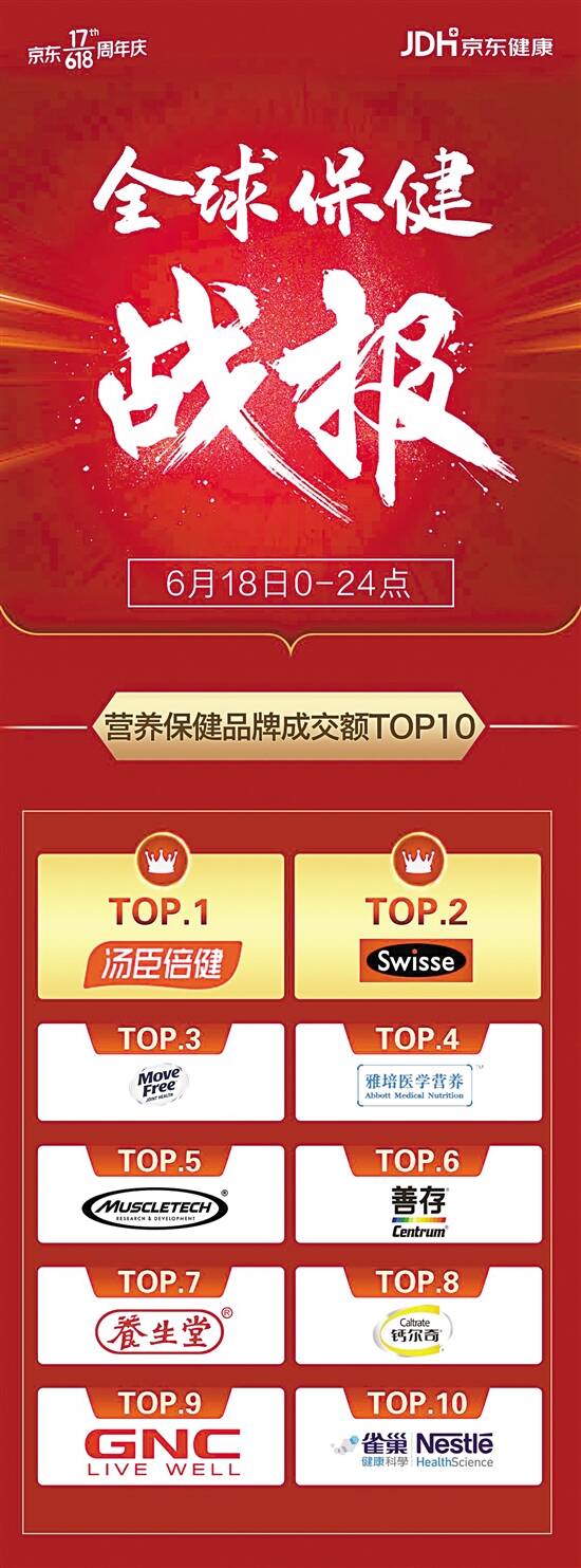 ■京东健康全球营养保健品牌成交额TOP10 |