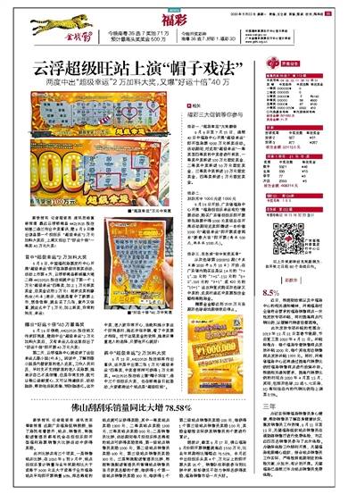 新快报讯 记者陆妍思 通讯员杨富丽报道 最近云浮郁南县44210525投注站接二连三传出中奖喜讯,继6月9日爆出该县第一个刮刮乐“超级幸运”2万元加料大奖后,上周又刮出了“好运十倍”一等奖40万元