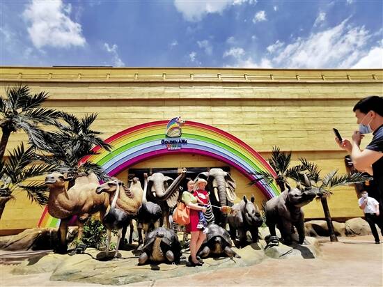 位于广州白云区安华汇商场的欢乐舟主题乐园日前开园。这个以欢乐、动物和船文化为特色的探索主题乐园,占地面积近30000平方米,囊括了欢乐舟、天面公园、玻璃连廊、浪漫草坪、嬉水广场和百变迷宫6大游乐主题区。为即将到来的端午假期添彩。 其中,现代沉浸式体验场景是乐园的最大亮点,市民游客在欢乐舟内可穿越“时空隧道”回到远古时期的原始森林。 新快报记者 陈镟 李小萌/摄影报道