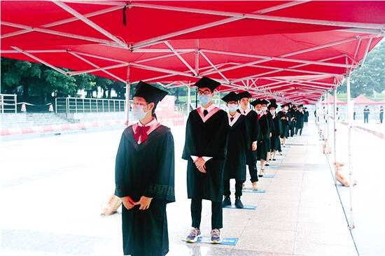 游戏版“云毕业典礼”、千米“红顶大道”下的室外毕业典礼、来年有约的毕业典礼、云端手绘毕业合照……随着毕业日子的临近,广东不少高校举办“云毕业典礼”。为了让这届特殊的毕业生不留遗憾,各高校创意多多,毕业生们纷纷感叹:“今年虽然形式不一样,但仪式一样不少,温情依旧在。” 特色毕业典礼 学子开发游戏版“云毕业典礼” 在游戏中参加云毕业典礼,与校园真实举行的毕业典礼现场同步进行;典礼结束后,还可以自由漫步虚拟校园,与母校心仪的特色建筑合影留念…… 今年广州大学华软软件学院的毕业典礼,采用“线上+线下”结合的方式进行。线下70名2020届毕业生代表,在学校参加毕业典礼暨学位授予仪式,其他同学则在线上参与。校方负责人介绍,为了提高体验度和参与度,为大学美好的岁月留下仪式,游戏系21名同学耗时1周,在游戏平台开发云毕业典礼现场,供线上的同学模拟回“家”。 该校游戏系学生工作办公室主任闫新利老师告诉记者,这个游戏版的虚拟校园“云毕业典礼”,真实还原了2020届毕业典礼暨学位授予仪式现场的真实场景。参与开发的该校2017级动画专业卫智浩同学说,“为了真实还原场景,我们采取了按比例缩放,尽最大的能力还原校园”。 在“云毕业典礼”中,学生可以从校门旁的地铁太平站开始,下站,进入校门,途经华软大道、喷泉广场,最终抵达学术报告厅毕业典礼现场,周围的特色建筑一个不少,同时还添加了“毕业快乐”“我爱华软”“欢迎回家”等温馨、打卡的网红元素。不少网友惊呼“真是神操作!”“慕了慕了!” 室外建千米“红顶大道”为毕业生分批拨穗 今年,广东医科大学以“云典礼”形式举行2020届毕业典礼。6月初的一场毕业典礼,100多名毕业生代表参加现场典礼仪式,其余毕业生则通过现场直播的方式参加“云典礼”。 为了更加安全地举办毕业典礼,学校为毕业生量身定制了室外学位授予仪式,精心布置1000多米的帐篷通道,为学生遮风挡雨。为确保学生保持安全距离,学校还在地上每隔1米贴个“地标”,让学生可按照地标排队。为确保万无一失为学生拨穗,学位授予前两天,学校党委书记、校长卢景辉还特意到定点医院再次做了核酸检测。
