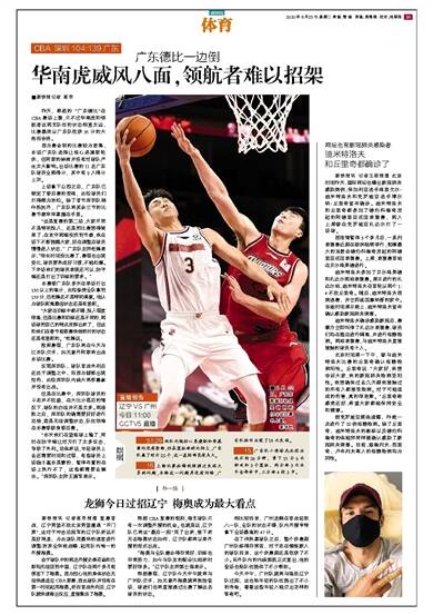 CBA 深圳104:139广东 ■新快报记者 高京 昨天,熟悉的“广东德比”在CBA赛场上演,只不过华南虎和领航者这两支队伍的状态相差太远,比赛最终以广东队收获35分的大胜而告终。