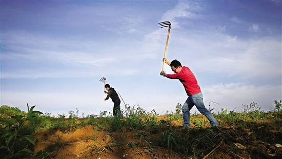 ■村民正在大田村水晶梨扶贫基地精心耕作,广州发展集团引种的水晶梨将在夏天迎来丰收。 |