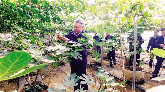 ■广州发展集团党委书记、董事长伍竹林到西江村农业产业园检查大棚种植的无花果和百香果情况,深入帮扶项目调研,指导解决存在问题。 |
