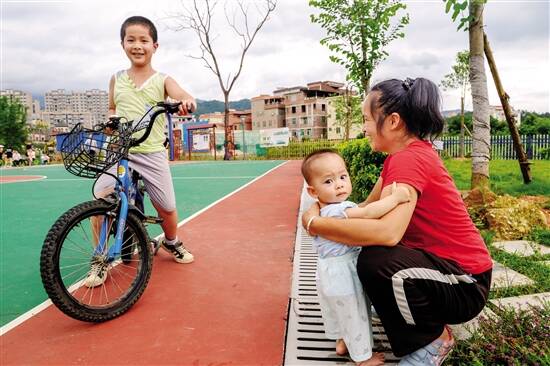 ■紫城村的孩子正在“双拥文化广场”上玩耍,脸上洋溢着蓬勃的朝气。 |