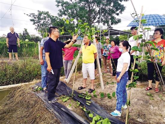 ■6月18日,朗照村邀请风景园林施工工程师容静东到百香果园现场指导剪枝细节。 |