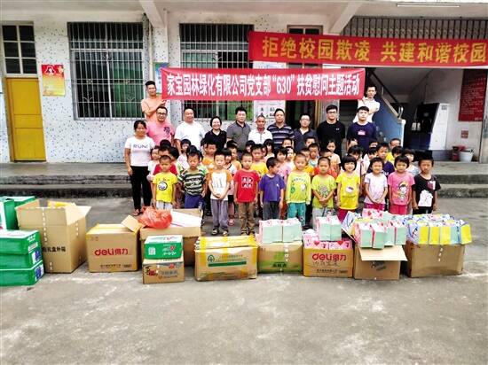 ■去年6月,扶贫工作队引领火炬区爱心企业家宝公司为鱼藤村助学。 |
