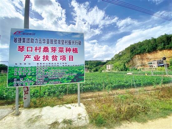 2019年,敏捷集团在“广东扶贫济困日”当天捐赠善款2.5亿元,其中2亿定向捐给五华。同时,积极动员各方力量,投入人力、物力、财力全力以赴支持五华脱贫攻坚工作。扎实推进党建扶贫、教育扶贫、产业扶贫、就业扶贫、消费扶贫、美丽乡村项目,实施具有敏捷特色的“五扶一美”帮扶模式。凭借精准的扶贫切入点,短短一年时间,“敏捷式扶贫”已在五华这片苏区红色土壤中结出累累硕果。 ■采写:新快报记者 彭程 ■图片:部分图片由受访者提供 盘活撂荒地 闲田变宝盆 五华县是广东省重点革命老区、原中央苏区县,是梅州市脱贫攻坚的主战场。去年7月,敏捷集团助力五华县脱贫攻坚乡村振兴办公室正式成立,组建专项小组驻点五华县深入参与各项扶贫工作。俗话说,万事开头难,从哪里开始入手,成为了摆在他们面前的第一道难题。 产业扶贫是帮助贫困户精准脱贫的突破口,是确保贫困户精准脱贫的重要途径,也是确保贫困户脱贫不返贫的有效方法。因此,敏捷集团从企业主业优势出发,积极实施种植产业项目,探索长期可持续发展的产业,助力贫困户增收,实现长效脱贫。帮扶伊始,这支年轻的扶贫团队多次深入五华县的家户农舍、田间地头进行实地调研,足迹遍布五华县的16个镇。经过扎实的前期调研和实地走访,打造桑芽菜产业基地想法初具雏形,这也是敏捷集团帮扶五华县首个产业扶贫项目。 “我之前在其他地区的扶贫工作中接触过桑芽菜种植,觉得可以在五华这边推广,正好琴口村有一大片荒废的农田可以利用起来。于是第一时间去和省农科院谈合作,没想到原来他们早就有这个想法,只是一直缺乏资金去推动。”负责该项目的敏捷集团扶贫办主管张飞腾虽是个95后的小伙子,却是有着多年一线扶贫工作经验的“老扶贫”。他告诉新快报记者,虽然当地并没有种植桑芽菜的传统,但桑芽菜种植难度低,维护成本低,一年三季收成,加上粤东地区尚未有系统化种植,市场竞争力强,比起水稻、玉米等传统作物收益要高很多。近年来,桑芽菜因其健康养生而广受市场青睐,是各酒楼食肆常备食材,发展前景可观。 与省农科院一拍即合后,他们马上组织专家实地开展水质及土质检测工作,250亩闲置农田的规划、租赁、整理等工作一气呵成。最终在琴口村建立了敏捷集团五华桑芽菜产业扶贫项目,以“合作社+致富带头人+农户”的形式,由科研单位提供种植技术指导,统一种植、统一加工和营销。 亩产3000斤 销往大湾区 授人以鱼不如授人以渔。扶贫项目建立起来后,敏捷集团扶贫团队思考的是如何激活村民的内生动力。为了鼓励大家改变观念,激发起他们要主动摆脱穷困,走致富之路的信心,从去年11月桑芽菜产业项目正式启动以来,就优先安排琴口村的贫困户就业,参与前期的开荒种植以及现代一体化深加工扶贫工厂的建设工作。 “项目开展以来,已经带动了全村220人就业,其中有贫困户173人。”张飞腾说,想要调动大家的积极性,就要让他们看到项目可以带来经济效益。于是,他们成立了敏琴桑芽菜合作社,通过粤东农批发市场、粤港澳大湾区“菜篮子”工程等食品出口渠道对外输出,让这些桑芽菜能跨越五华县的四面环山,去到大湾区人民的餐桌上。 今年5月,桑芽菜基地迎来首摘,第一期的亩产量达到了3000-4000斤。更让村民欣喜的是,这批桑芽菜的市场反响非常好,市场批发价卖到了4元一斤。 “我们是采取‘4321’的收入分成模式,就是40%用于合作社的经营运作,30%作为全镇贫困户分红助力脱贫, 20%用于促进村集体收入, 10%则重新反哺社会,用于慈善公益。”张飞腾说,村民们从最初热情不高,到现在每天有三四十人次参与到项目日常工作中来,还有周边多个乡镇也表达了想要加入该种植项目的想法。 为了更好地推广桑芽菜,敏捷扶贫队员还和五华县美食协会联手研发出桑芽菜的八种做法,并制作出视频食谱,消费者只要扫一扫桑芽菜产品包装上的二维码即可观看。 “多亏了敏捷的帮扶,我才能撑起这个家” 对于敏捷集团带来的这个新产业,钟木英始终满怀感激。作为琴口村的一名外来媳妇,原本她过着平平淡淡的日子——丈夫在外面开货车谋生,她在家中安心照料四个孩子。然而,4年前,丈夫突然因急病去世,让整个家庭的重担都落在了钟木英一人肩上。四个孩子的学费和生活开销,加上还有一个年近八旬的婆婆要照顾,在很长一段时间里,钟木英看不到生活的希望。 了解到她的情况后,敏琴桑芽菜合作社马上将她招到扶贫车间里工作,让她可以一边学习桑叶种植、采摘、加工、储藏等技术,一边学一些管理知识。“多亏了敏捷的帮扶,我才能撑起这个家!”钟木英分外珍惜这样一个既能在家门口赚钱,又能兼顾家庭的工作机会,用勤奋的工作态度来回报敏捷扶贫团队对自己的信任。 如今,除了桑芽菜的收入分红外,她每天还有100元到120元的车间工资收入,还成了合作社的“储备管理干部”。此外,她还打算将学到的种植技术投入到实践当中,在自家地里也种点桑芽菜,用自己的劳动带领一家人致富奔小康。