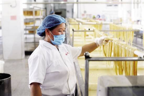 ■扶贫工作队引进了腐竹厂,贫困户和村民可以就近就业。 |