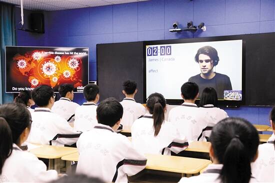 ■赫章县第三中学,远程录播信息中心,通过视频连线,学生可以上外教课。 |
