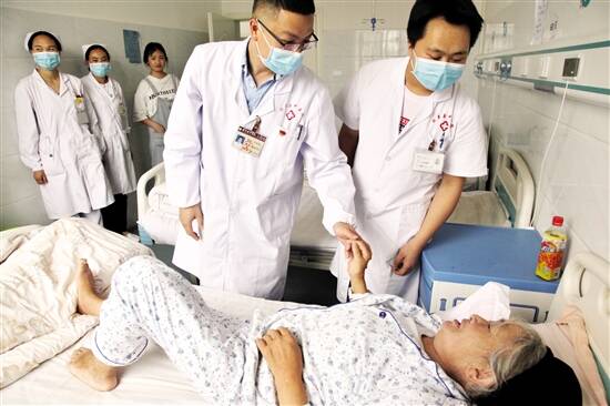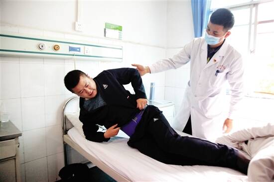 ■赫章县中医院,来自番禺区中医院骨关节科的陈潮锋医生在查房,看患者术后的恢复情况。 |