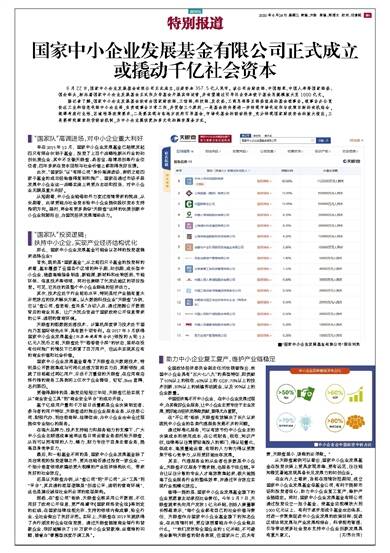 6月22日,国家中小企业发展基金有限公司正式成立,注册资本357.5亿人民币。该公司由财政部、中国烟草、中国人寿等国家部委、国企牵头,标志着国家中小企业发展基金正式作为母基金开展实体运营,并有望通