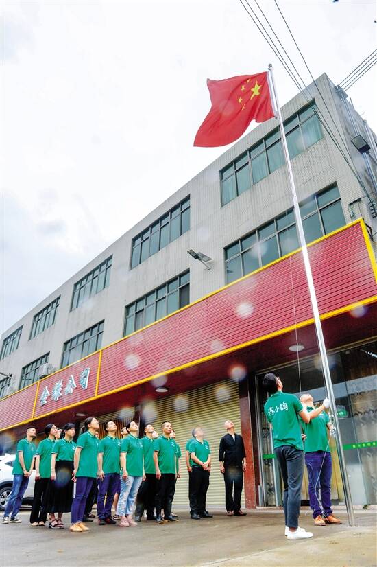 ■金绿公司员工每周一都举行升国旗仪式。 |