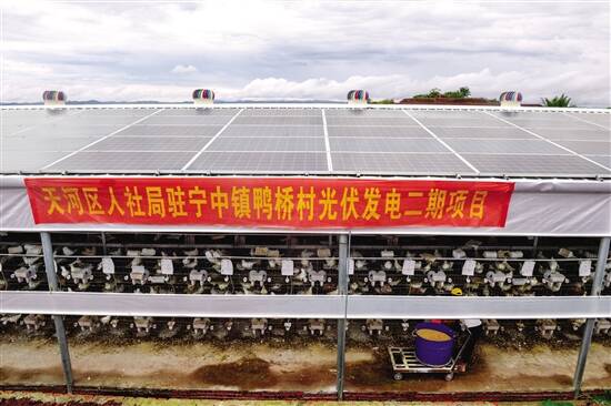 ■工作组积极协调金绿公司和兴宁市发改局等相关单位,并做通贫困村工作,通过鸽棚加固、改造变压器等措施,在棚顶成功架设光伏电板,创新建成农光互补产业。 |