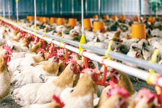 ■洞美村全自动的饲料线、喂水线显示着现代鸡舍的智能化。 通讯员供图 |