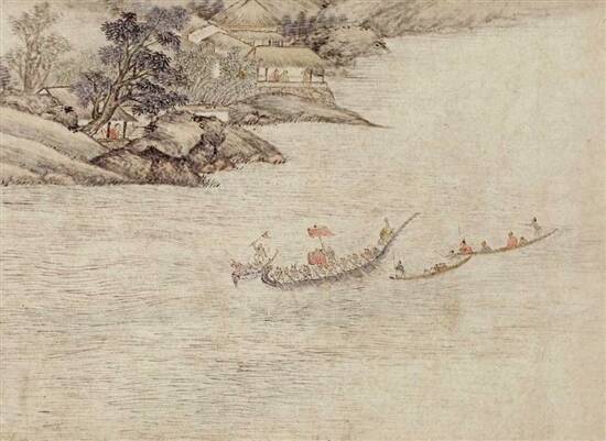 ■王概 龙舟竞渡图卷(局部)故宫博物院藏 |