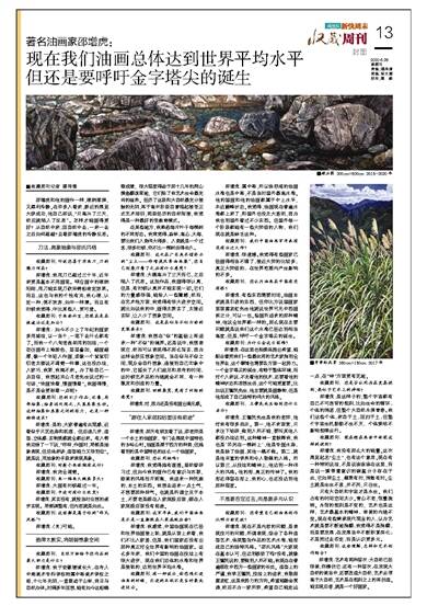■收藏周刊记者 潘玮倩 邵增虎和他的画作一样,硬朗澎湃,又犀利冷静。在许多人看来,新近的展览大获成功,他自己却说,“只高兴了三天,然后就陷入了反思”。怎样才能画得更好?从自然中来,回自然中去,